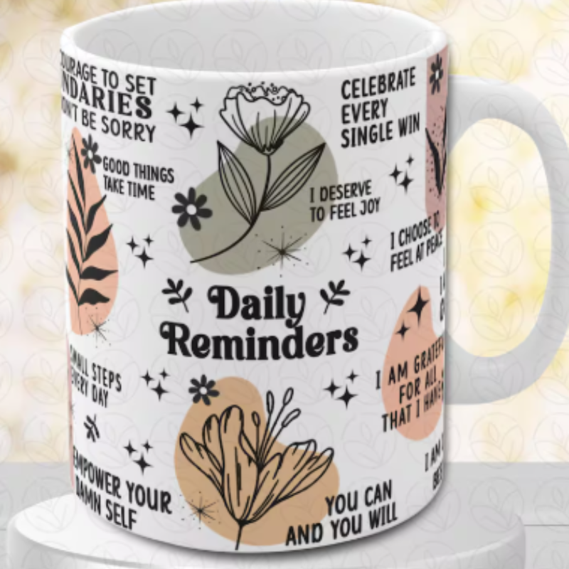 Daily Reminders Mug – Inspirational Coffee Cup for Motivation & Positivity