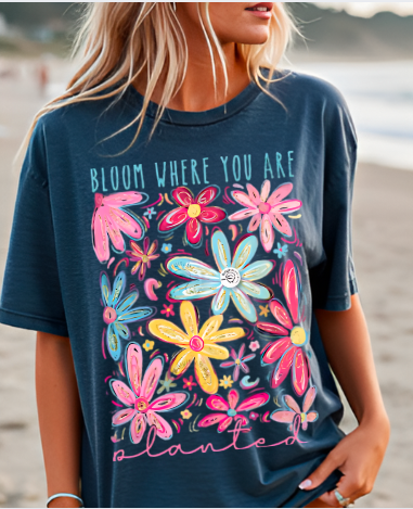 Bloom Where You Are Planted T-Shirt – Motivational Floral Design | Inspirational Shirt with Positive Message