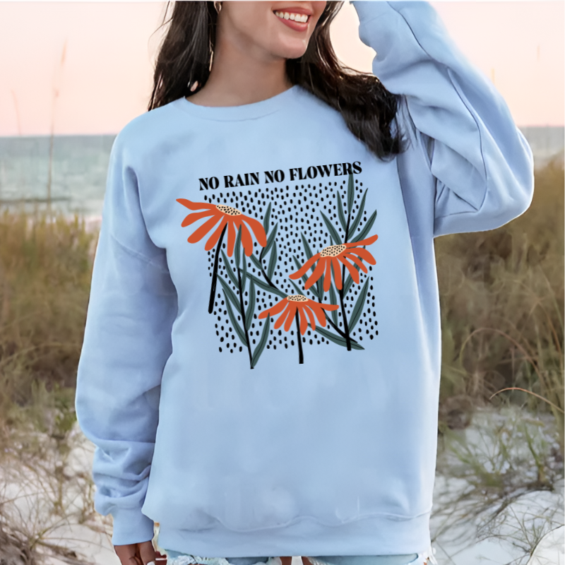 No Rain No Flowers Sweatshirt | Inspirational Crewneck | Motivational Apparel